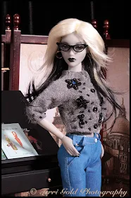 The wonderful drafting table is a Tonner Tyler furniture item. The clip on lamp works. The drawer opens as does the top of the table which is held in an angled slant by a rod you pull up inside. The stool comes with the set. Recently a nearly new set sold on eBay for $50.99. The seller also included the Design Essentials set which is adorable. Tonner furniture is perfectly scaled for our 16" dolls. It never looks too small.
